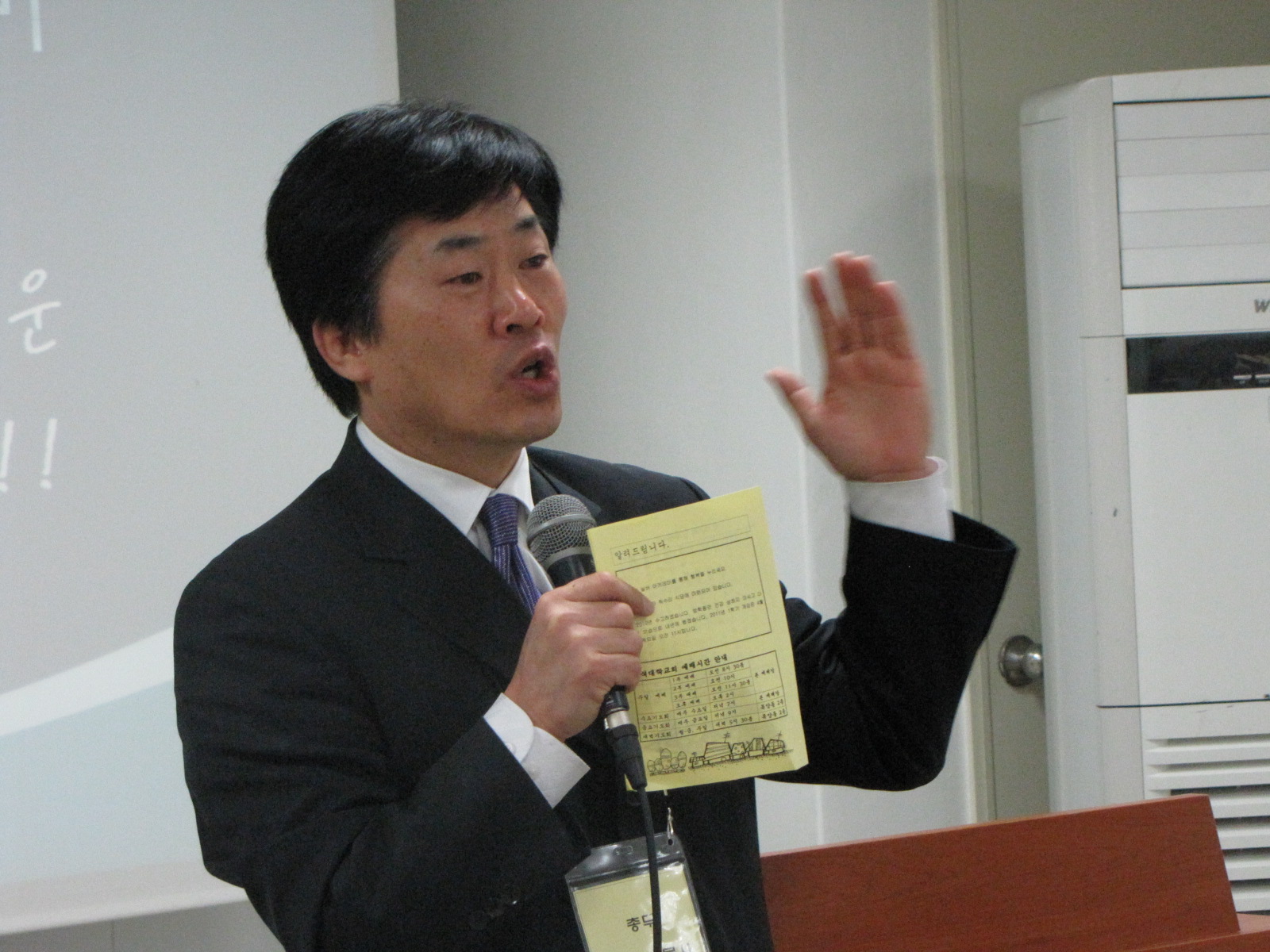 광고하시는 김경세 목사님.
